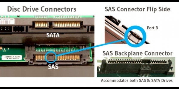 Con el lanzamiento de la interfaz y discos SATA, apareció en el mercado SAS (Serial Attached SCSI), evolución de la interfaz SCSI anterior. Como su antecesora SCSI, permite la conexión en serie de hasta 16 discos duros (con conector SAS o Serial ATA).