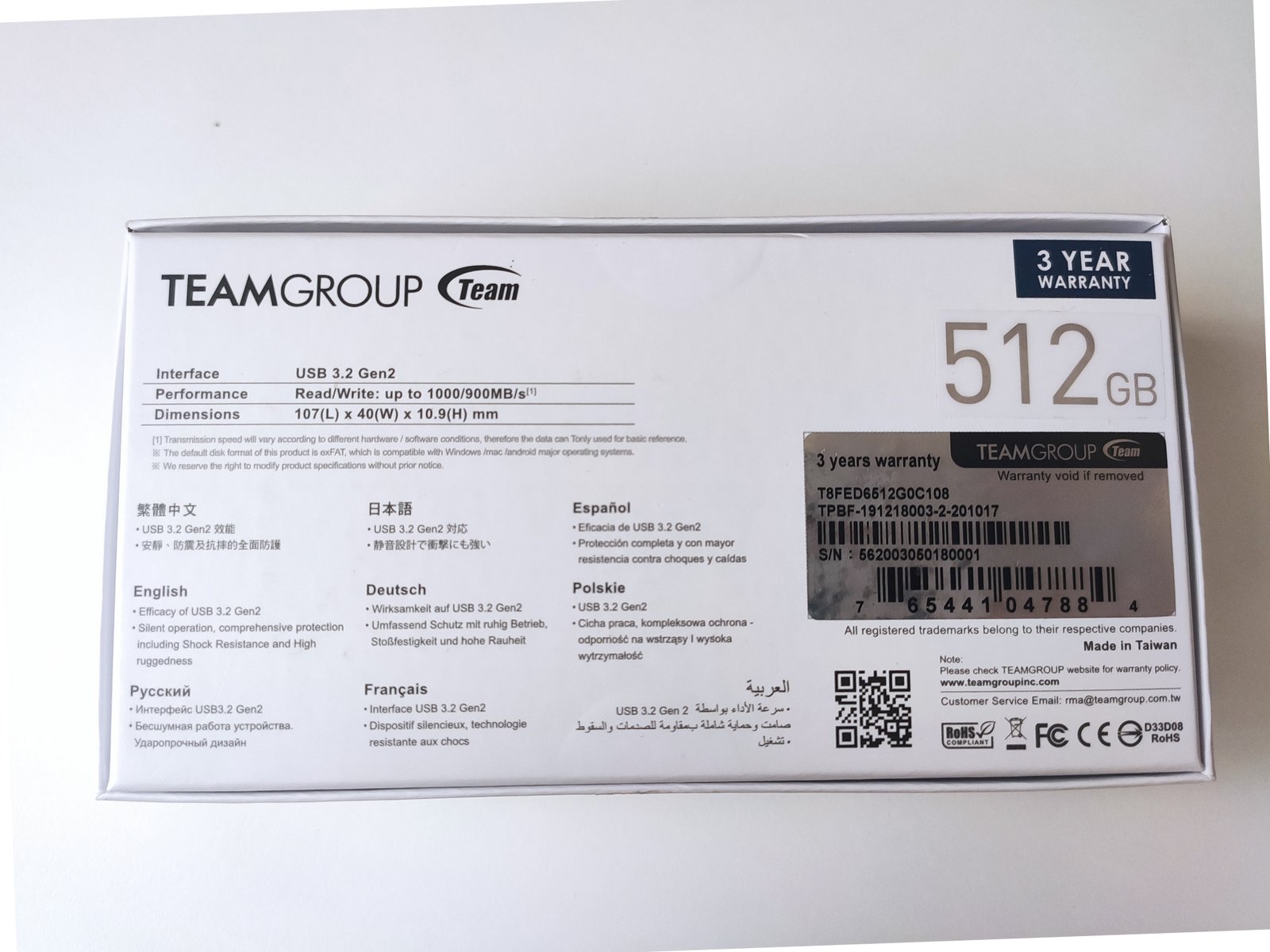 [table id=11 /]En cuanto al hardware interno, el fabricante no menciona los componentes internos del dispositivo, aunque viendo el formato del TeamGroup PD1000, presuponemos que en su interior encontraremos un disco duro SSD NMVe 1.3 con memorias NAND TLC 3D firmado por TeamGroup junto a un puente PCIe a USB 3.2 Gen.2.
